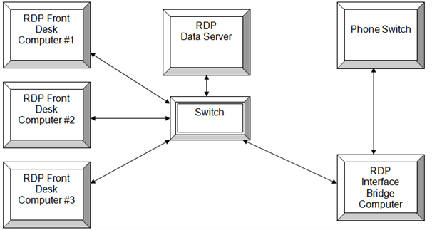 - RDP communicates with the phone switch using a RS-232 serial cable.